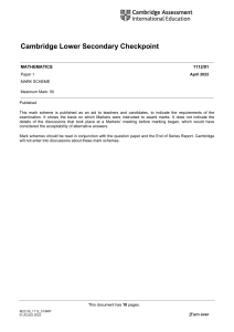 Cambridge Lower Secondary Checkpoint Math Mark Scheme